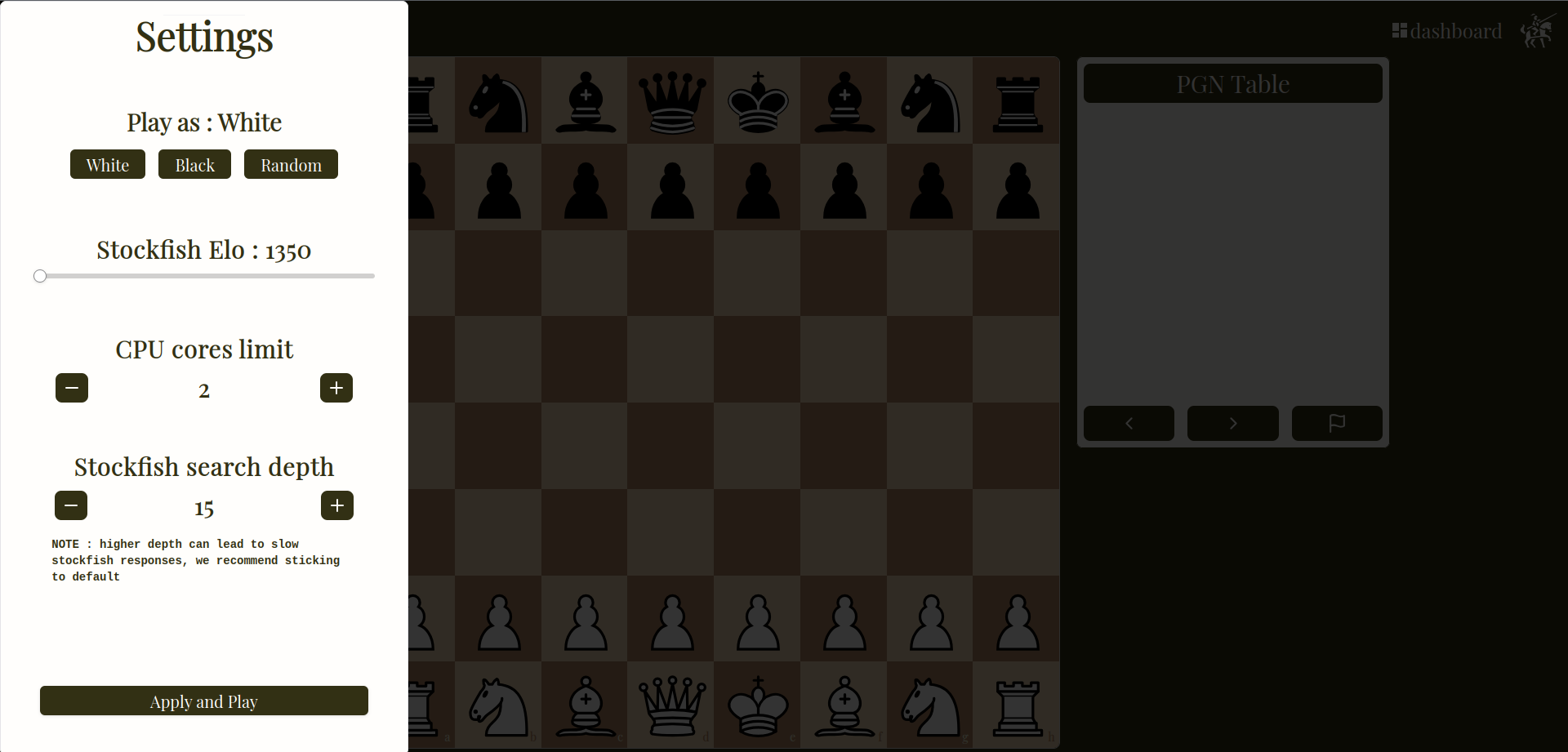 A web-assembly-based Stockfish engine is used in the current version of the Chessdom app, which enables multi-threading by utilizing multiple web-workers. The earlier version had a server-based Stockfish engine, but due to scaling issues and issues of longer response times between the moves, the WASM engine was selected.